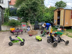 Bunte Stelzen, ein Trampolin, lustige Pedalos – im Spiele-Wagen des Kinderschutzbundes findet jedes Kind von vier bis zehn Jahren das richtige Spielzeug. Von Mai bis September ist der Wagen, der auf dem Spielplatz an der Stiftstraße / Ecke Erbacher Straße steht, jeden Sonntagnachmittag geöffnet. Ehrenamtliche Mitarbeiterinnen und Mitarbeiter betreuen die Kinder und helfen ihnen dabei, spielerisch ihre motorischen Fähigkeiten zu trainieren.